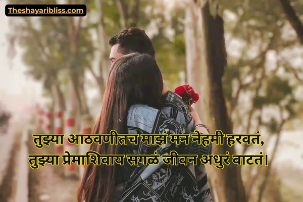 Love is a feeling that makes life super special, right? Romantic Shayari in Marathi is all about sharing those sweet feelings in a short, nice way. It’s like saying what your heart feels in a few words, and it can make someone really happy.